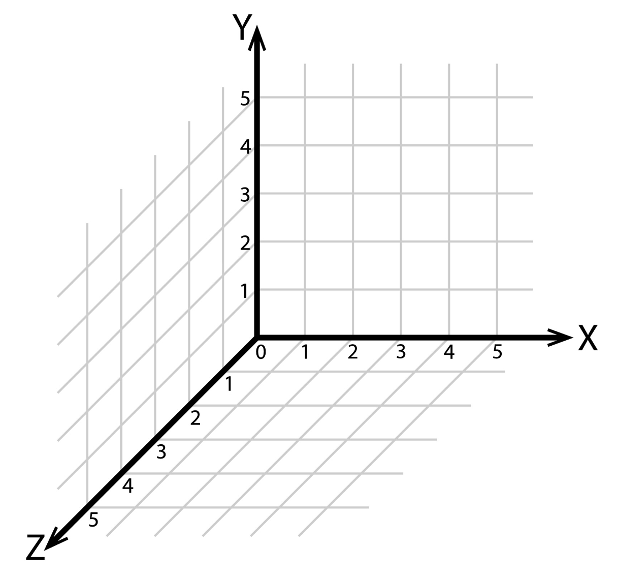 首先,我们需要建立坐标系,用来表示3D世界中物体的位置,比如我们的老朋友——笛卡尔右手直角坐标系: